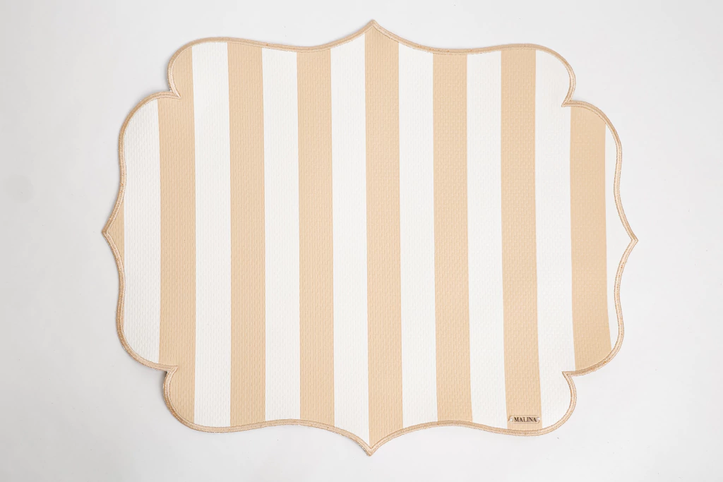 Um dos queridinhos da Malina quando o assunto é unir praticidade e beleza à mesa. Possui acabamento impermeável, o que permite a limpeza com apenas um pano úmido — e o melhor: não precisa passar! De um lado, listras delicadas em bege e branco; do outro, um tom branco liso. Dois visuais em uma só peça.